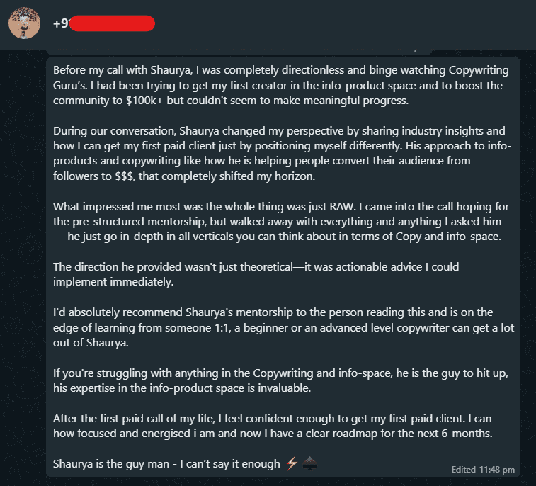 Because, my mentor was there to advise me on what to do, reviewed my sales calls and helped me fix my copy, pitch and accent to ultimately land more clients and make more money.
